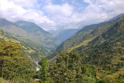 On our first day, the trail already offered us great views of the valley and an insight into the life of people living in small Nepali villages. We took the opportunity to stop and have tea in a small family home and discuss with them about their lives. We stopped for the day around lunchtime in Upper Ngadi, a really small village with only one lodge. We didn’t know what to expect from all the restaurants and small lodges regarding the food. We were thinking that we would eat the same thing for three weeks, but the menu is quite extensive considering the remote location of the villages. We already walked 12.6 kilometres today, carrying our own backpacks. We were quite satisfied we could make it that far for our first day. We realized right away that our bed time would be really early on the trail when we went to bed… at around 8:15 pm.