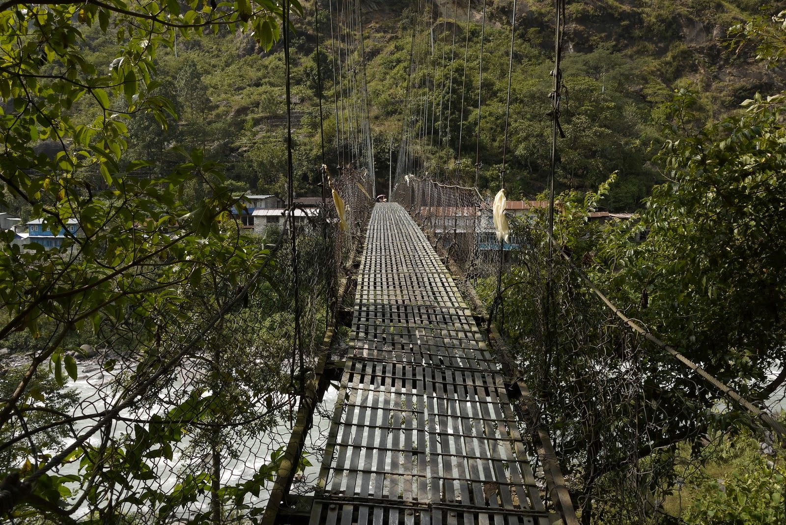 The mornings were quite similar every day, as we picked the same things for breakfast and were getting up at around the same time. On this second day, we were feeling great and were still excited about this adventure. We walked with a good pace along the river that we were going to follow for most of the trail. We were going up in altitude, but the river seemed to stay with us, flowing down the other way. We made it to Jagat on this second day, 13.8 kilometres further up in the valley, and at an altitude of 1281 meters. We stayed at the “North Face” lodge, the sign outside even had the official logo, just as all the clothes in Kathmandu. We were really happy with the basic room and its three windows providing great views. We also enjoyed our hot shower in the shared bathroom. The menus were quite similar so far, but the food is always a little different even when ordering the same meal. It was, again an early bed time as we were quite tired.