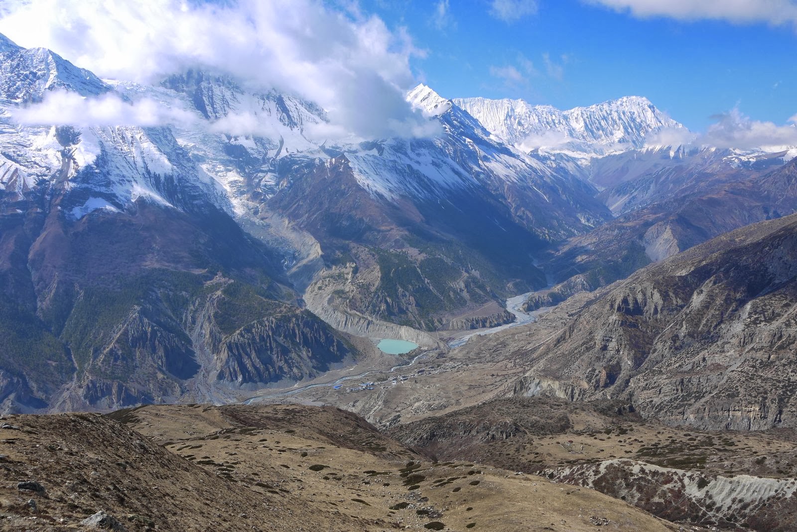 | View towards Manang and Tilicho Lake from the Ice Lake trail |