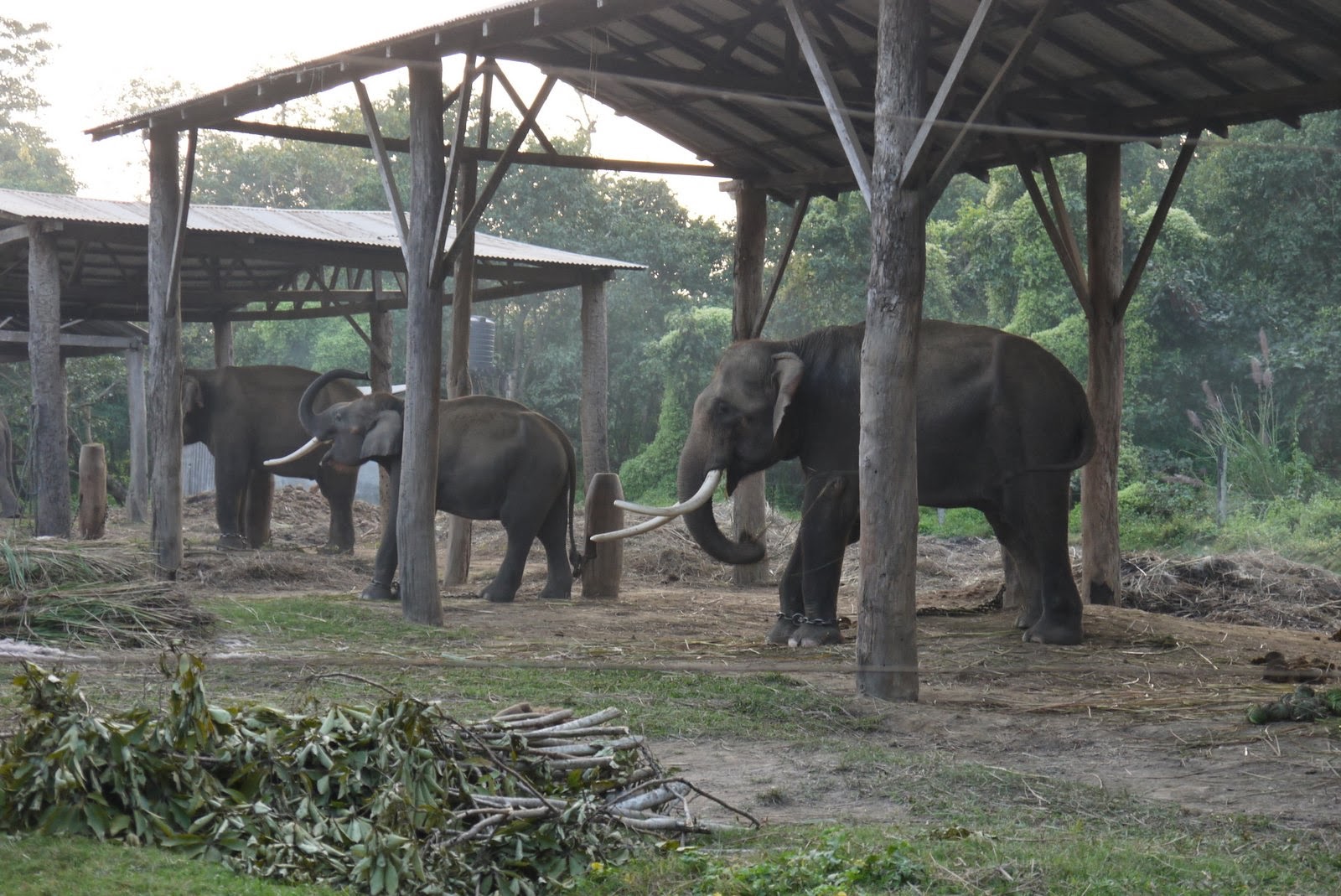 The hotel offers a “sightseeing” tour everyday around 4pm. We followed our “guide” to a place where they keep some of the elephants. We saw a baby elephant, about 5 months old and her mom, 40 years old. There was also a big old male about 60 years old. They are unfortunately chained down to prevent them from running away. It is sad to see them restrained, but as they grow up in captivity, they are not used to caring for themselves anymore. They are mostly used for safaris in the jungle, carying tourists on their backs twice a day. We saw one owner clearly abusing his elephant, but for the most part, owners seemed to treat their elephants fairly. Never as good as if they were in the wild, but better than we had expected.