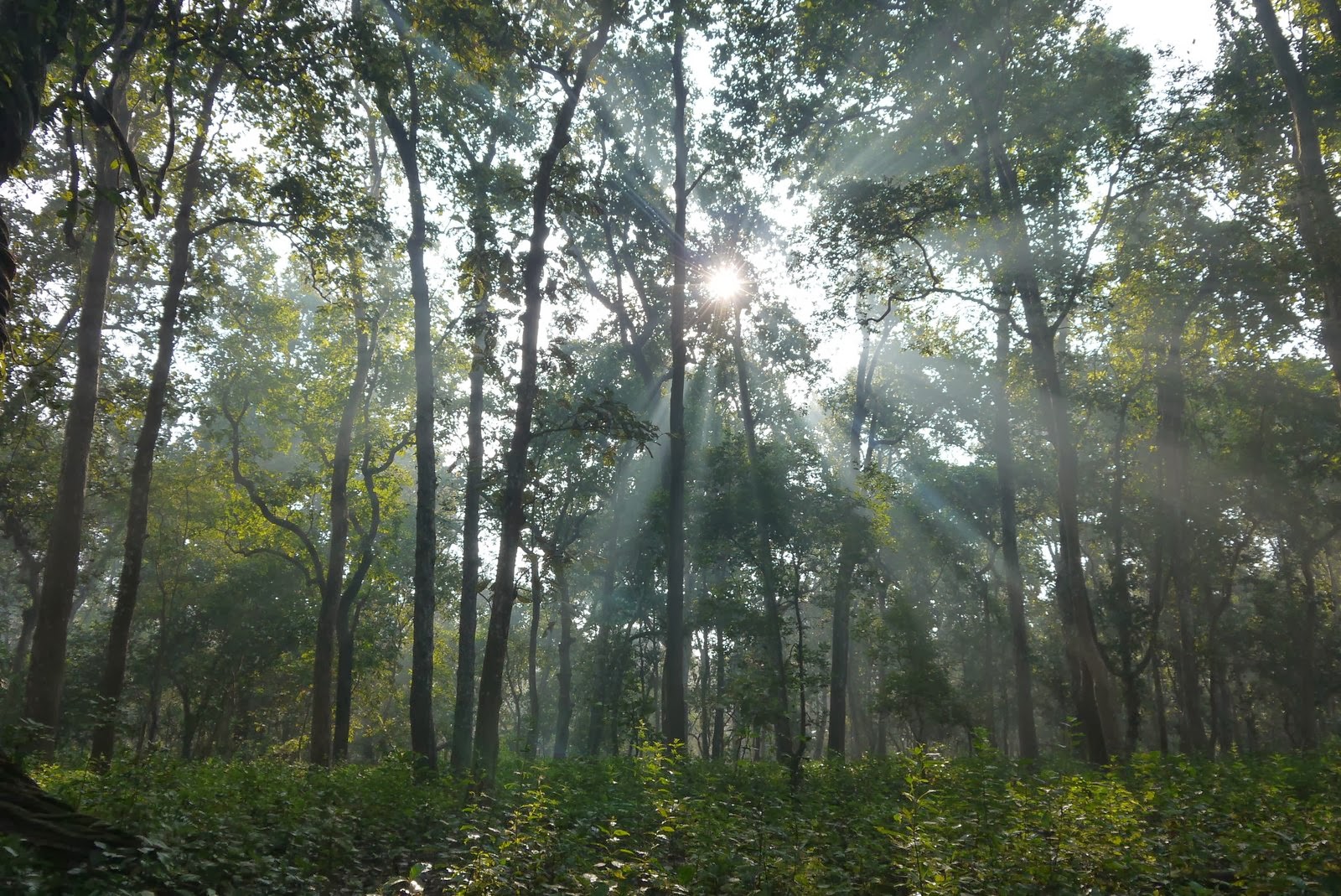 The next morning, we woke up at 5:30, had breakfast and met with our guide for our walking safari. We walked to the ‘sunset viewpoint’ area, where our guide had to buy our permit. The formalities took a while and we started our trip only at 8am. Any groups of more than two going for a walking safari in the jungle needs two guides, one in front and one in the back. We sat in a long canoe with another couple, the four guides and the boat driver. We spent 45 minutes on the water, seeing many birds on our way. It was very foggy and it added a little mystery. When we stopped our boat tour, we stepped out and viewed our first big animal, a rhino! It was in the very tall grass so quite hard to spot, but we stayed for a while and it finally moved a little bit while eating, before laying down with a “hmmph” of content.