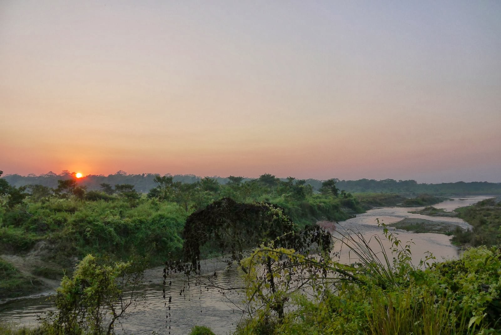 We followed the guide through the very long grass keeping an eye open for wildlife and hoping for a tiger or a leopard. Unfortunately we didn’t see them. When we arrived closer to a long lake, a rhino got out of the bushes right behind us. We looked at it for a few minutes while it was wondering if we were a treat or not. We walked to a tall watchtower to have lunch. The rhino decided it was bath time and went in the water just in front of the tower. We watched it for about an hour while having our lunch. It really seemed to enjoy its bath, but at one point it needed to go to the toilet, so he walked out of the water, peed for what seemed like forever, and went right back in the lake. Later on, another group caught up with us and the rhino must have thought it wasn’t quiet enough anymore because it went back in the forest.