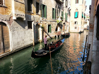 We got up to take the train to Venice. The train ride getting from Verona to Venice was very scenic, especially when entering Venice via the bridge. When we got out of the station, we found the Hotel Guerrini very easily. We checked in and went for a walk in the little streets of Venice. There are many bridges that go across the canals. There is also a lot of boat traffic and tourists. It is very nice and relaxing to be in a car-free city. It was very funny to see water taxis, water buses, water ambulances, water polices etc.