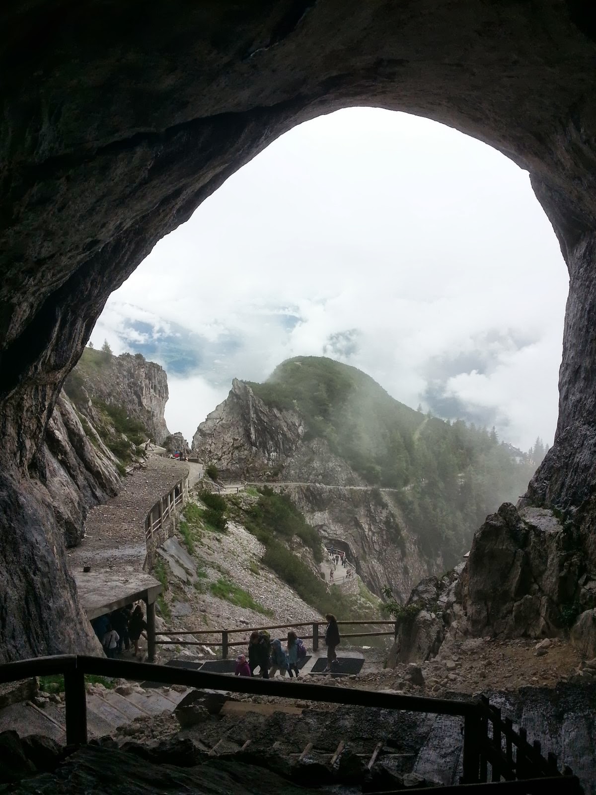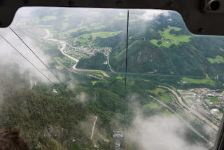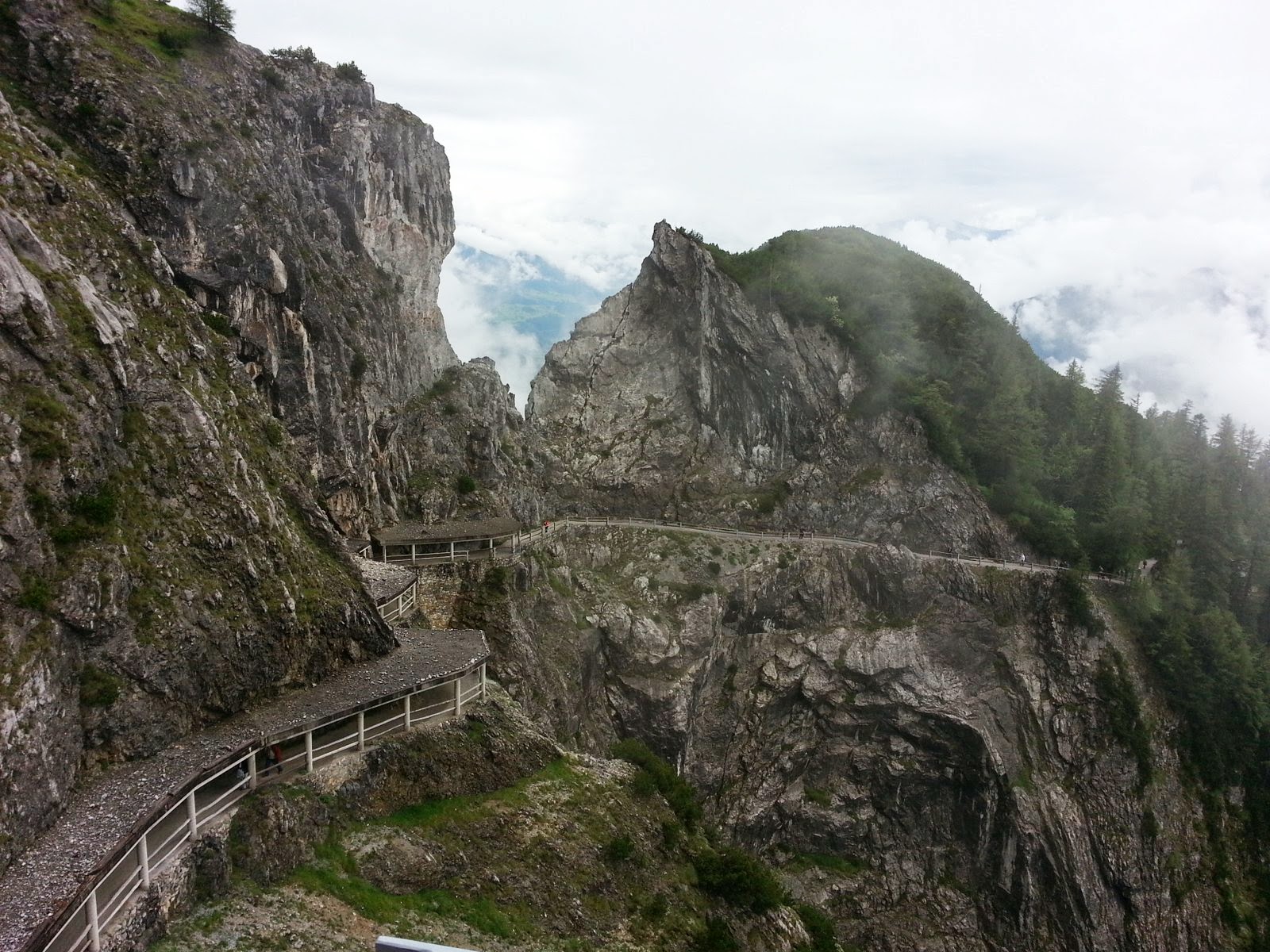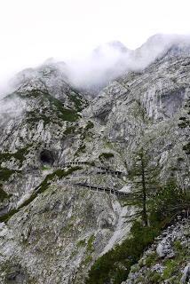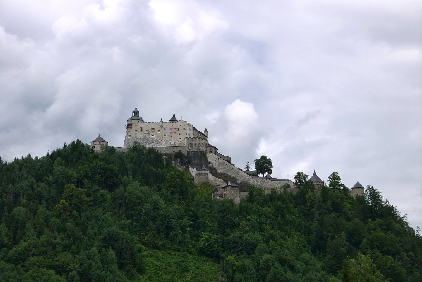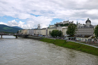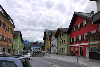 The main reason for our stop in Salzburg was to see the Eisriesenwelt ice caves. We got up early and took the train to Werfen, Austria. The train ride was in a valley surrounded by big fields with white top mountains in the background. The little village is very colorful and peaceful. We took a mini bus from the station to the ticket office, 5 km uphill. We then had to do a steep twenty minutes walk to get to the cable car that took us closer to the cave entrance. There was another twenty minutes steep walk to get to the entrance. A good work-out well worth it but not over. The tour consist of a 1 km deep visit in the caves that are 40 km long. It is again a workout as you go up and down around 1400 stairs in the ice caves . The caves are beautiful with the ice formations inside that the guide illuminates from behind for the visitors. Unfortunately, pictures are forbidden inside the caves during the tour so we borrowed one from their website as an example. It is magical and a must see in Austria.
