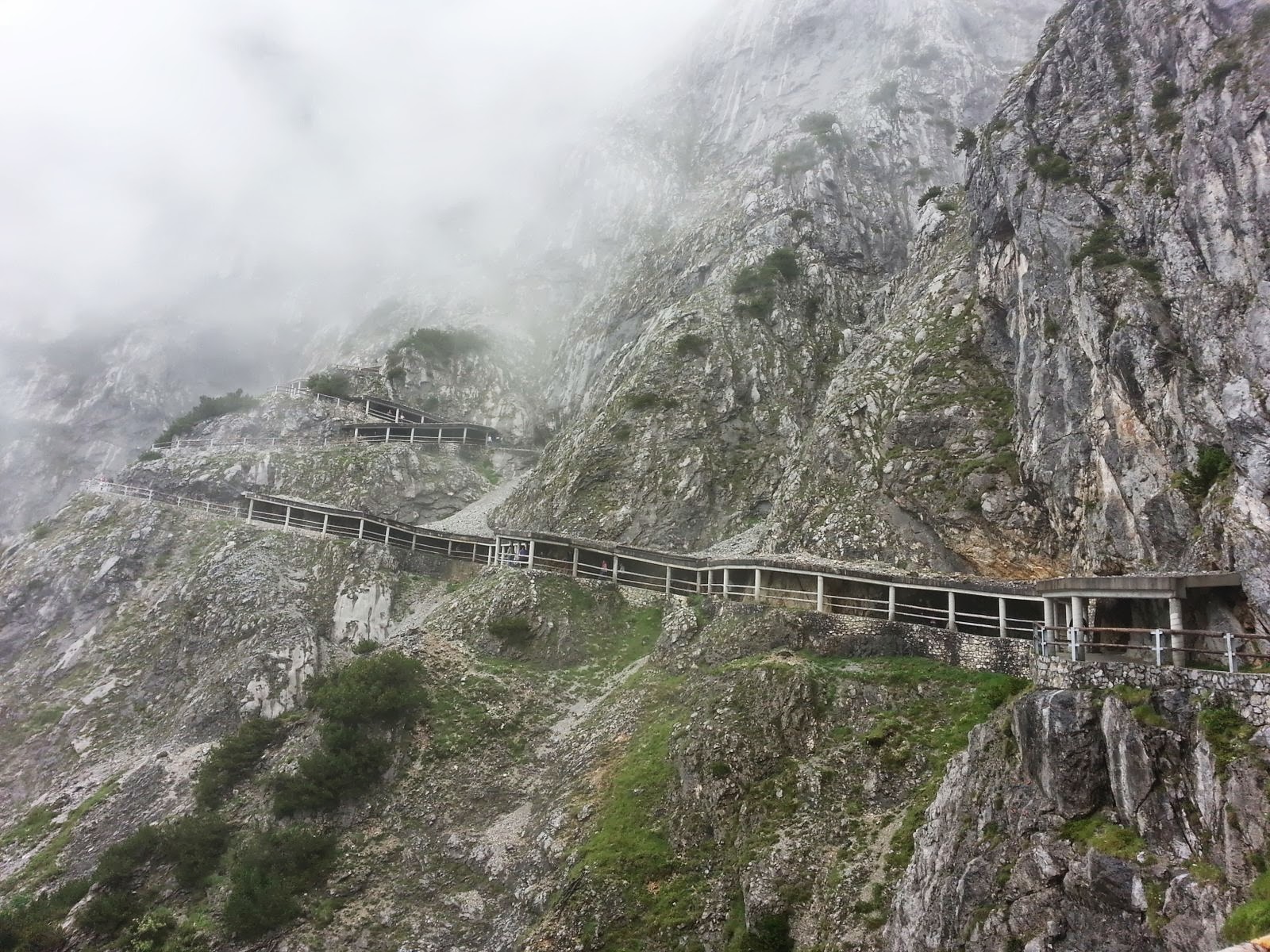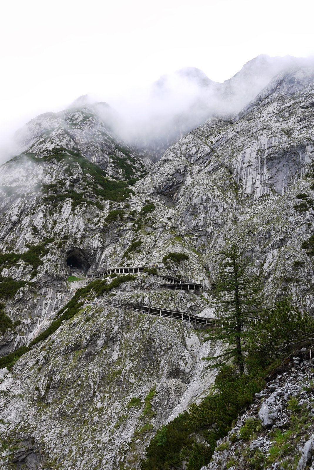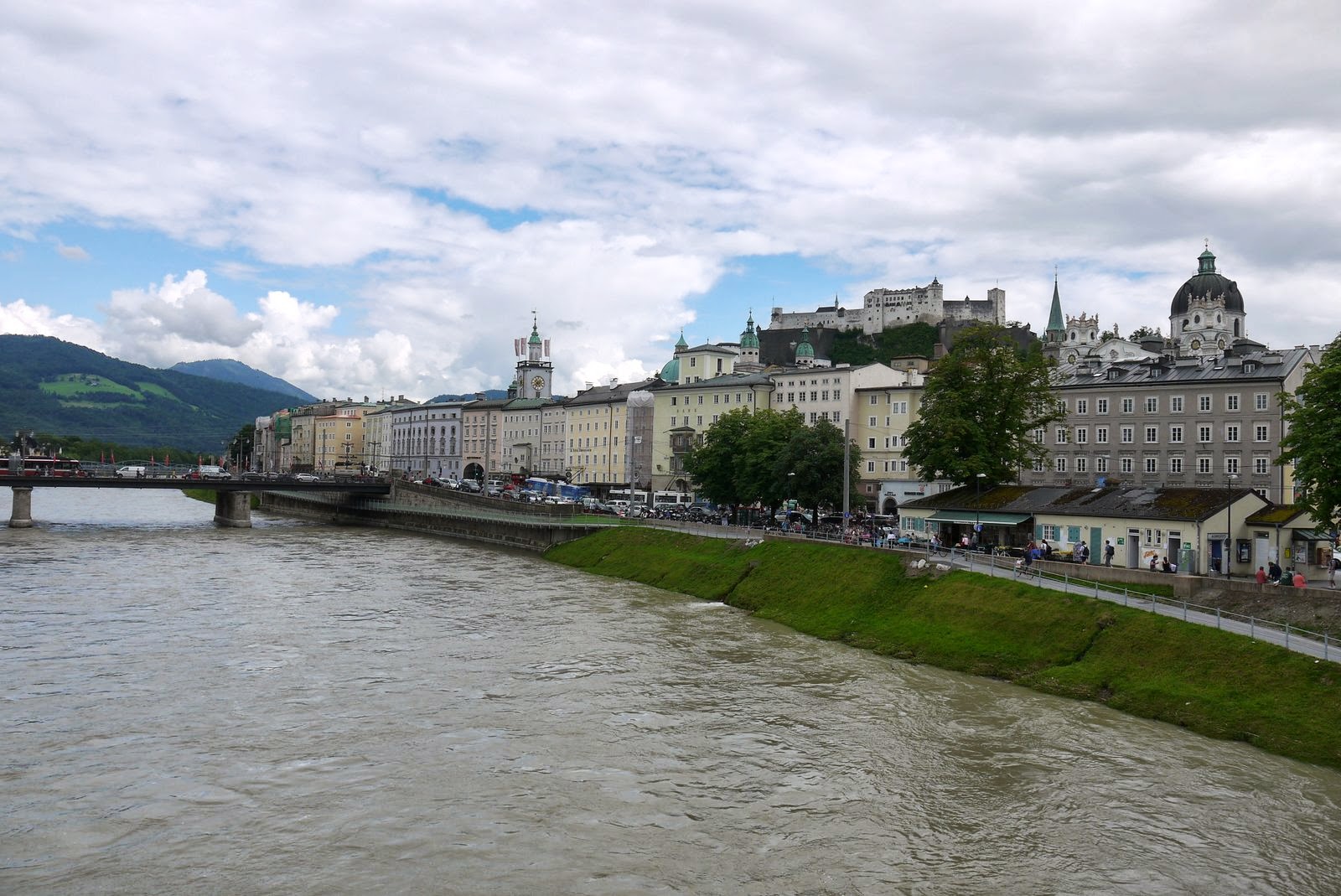 The main reason for our stop in Salzburg was to see the Eisriesenwelt ice caves. We got up early and took the train to Werfen, Austria. The train ride was in a valley surrounded by big fields with white top mountains in the background. The little village is very colorful and peaceful. We took a mini bus from the station to the ticket office, 5 km uphill. We then had to do a steep twenty minutes walk to get to the cable car that took us closer to the cave entrance. There was another twenty minutes steep walk to get to the entrance. A good work-out well worth it but not over. The tour consist of a 1 km deep visit in the caves that are 40 km long. It is again a workout as you go up and down around 1400 stairs in the ice caves . The caves are beautiful with the ice formations inside that the guide illuminates from behind for the visitors. Unfortunately, pictures are forbidden inside the caves during the tour so we borrowed one from their website as an example. It is magical and a must see in Austria.
