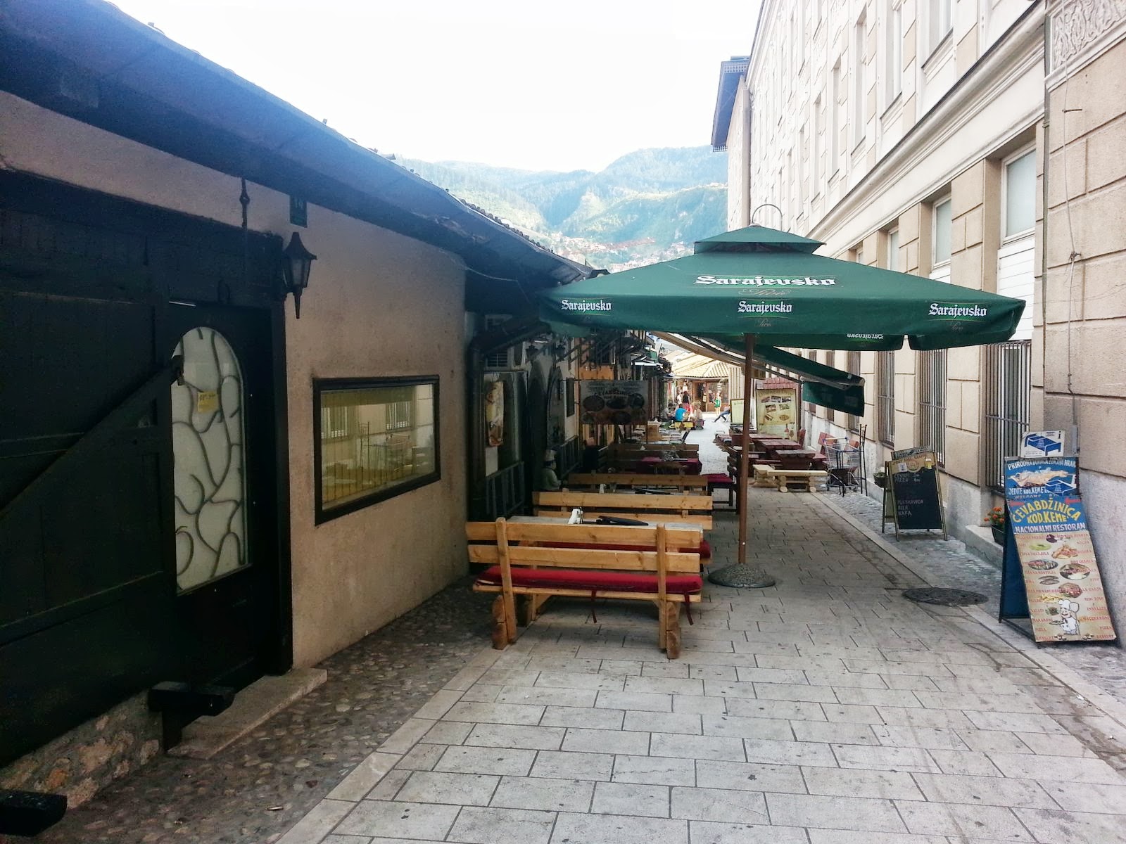 After visiting Montenegro, we decided that we were going to visit Bosnia for a few days. The trip from Zabljak to Mostar was impossible to plan as nobody could tell us if and when there was a bus. They mostly only know the direct destinations from their town and can’t help much with the transfer after that. We then decided to start with Sarajevo as it was easier to get there and move to Mostar afterwards. We were up really early to get on the 7:15 am bus to Sarajevo. We were actually really fast at getting ready and waited for a little bit at the station. Nobody was around for a while but then all of a sudden, everybody seemed to arrived at once. We were hoping for a big bus, but instead it was a little mini-bus that pulled in. Fortunately, half the people were going to Podgorica. The 18 passengers mini-bus was full, but the road was nice.. well the view anyway! We spent a good portion of the trip chatting with a guy from California that has been on the road for 15 months. It was inspiring to hear about all the places he visited so far. We arrived in Niksic for the transfer and there was already a bus leaving for Sarajevo. We got in only to find the bus fully packed. We spend the first 1.5 hour standing in the back of the bus. The bus was really slow because of the mountain road. It almost felt as if it was not going to make it all the way to Sarajevo. Eventually some people got of the bus and we could sit. When we arrived in Sarajevo, we were in the east station and needed to find a way to the center. We were going to walk but it seemed way too far. Suddenly a guy with a backpack was running after us. He also didn’t know how to get to the center so he tagged along. We finally found the city bus station that was 5 min away, hidden from the bus station. For once our french was useful as a man beside the bus helped us understand the bus driver and he exchanged us 5 Euros to Convertible Mark. It was enough for all of us to take the bus. We got of the bus in the old town and decided to look for a place with WiFi in order to book a room somewhere. We usually prefer to have a place booked when we arrive in a new place, but we didn’t this time. We had a beer in the Pirate Pub that accepted Euros with our new German friend where we booked a private room in a ‘hostel’ (really a 4 bedroom apartment which 3 rooms are rented out). We set our bags down and went for a walk in the old town. The city looks really different than all the other European cities so far. We liked the mixture of religions; there is a Catholic church facing a Mosque. We had a good time in Sarajevo, enjoying the nice vibe of the city.