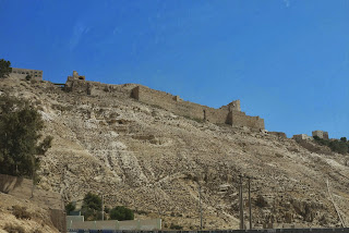We drove to Al Karak, were we visited the castle. It is perched atop a mountain, protected by the natural obstacle of climbing said mountain. It was also fortified during the Crusades to prevent the people living in the city to get in uninvited. The castle ruins are pretty impressive, they include few levels of rooms made for different purposes. We enjoyed our visit once we could get rid of the guide who was following us and trying to force us to take his tour, not mentioning that he was expecting to be paid at the end. Karak is a very busy city, with many cars honking to try to get the traffic to go faster. Oddly enough, it doesn’t work, haha! When we left Karak, we were aiming to come back to Madaba by the King’s Highway, but we somehow ended up on the Desert highway. We drove north following 3 different maps that had different roads on them, and we had to go all the way to Amman. They are also working on the road and there was no turn-around for a while. When we finally found one, it was really narrow, and didn’t look legit, but we finally made it back to the hotel. We went for a walk to find supper and almost decided to just by some hummus and forget about a real supper but we saw some locals sitting at a table by the street, eating falafel sandwiches. We had a really cheap supper! 1 JOD for 2 tasty falafel sandwiches.