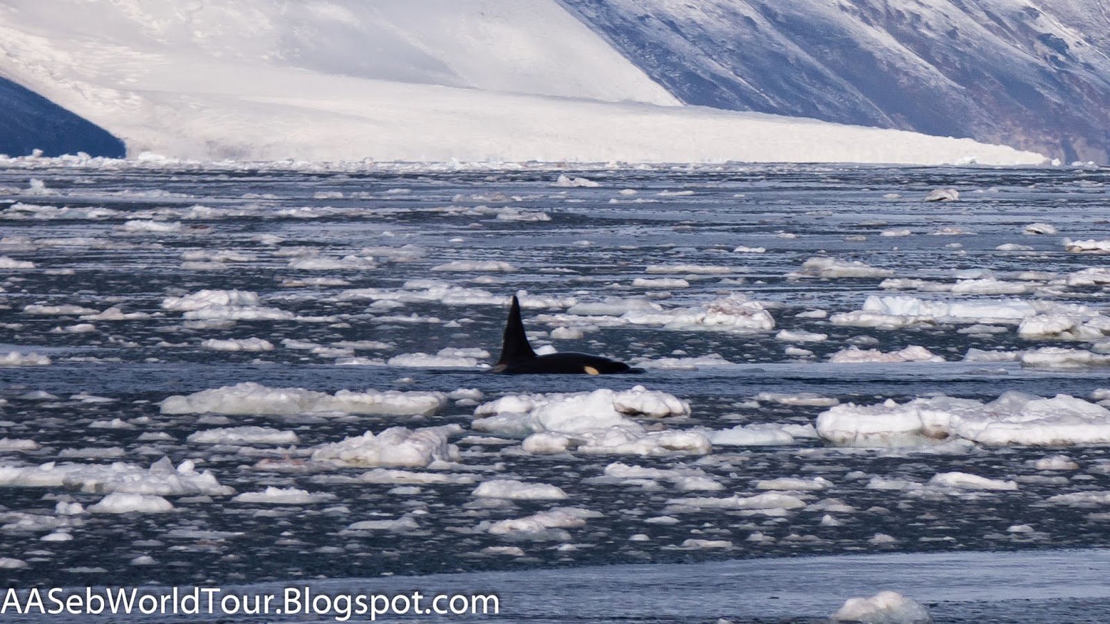 On our way, while avoiding big ice chunks, somebody spotted some whales in the distance. We stopped everything we were doing and enjoyed a private show from the many killer whales that were busy feeding in the area. At first, they did not seem very interested by the boat, but as we were slowly getting closer to the beach, they came in to have a closer look. We even saw a mommy killer whale and her little baby.